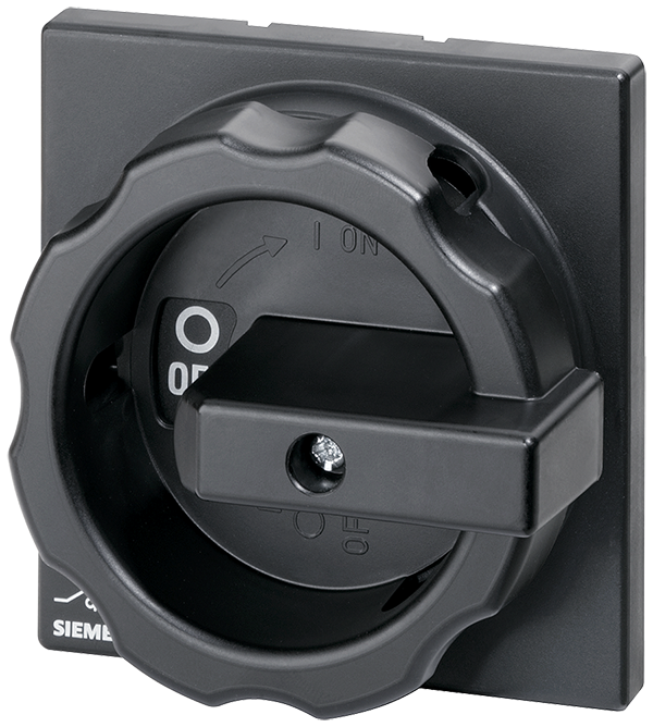 ACCIONAMIENTO GIRATORIO NEGRO PARA INTERRUPTOR 3LD2, 25A, 32A PARA FIJACION FRONTAL FIJACION EN AGUJERO CENTRAL
