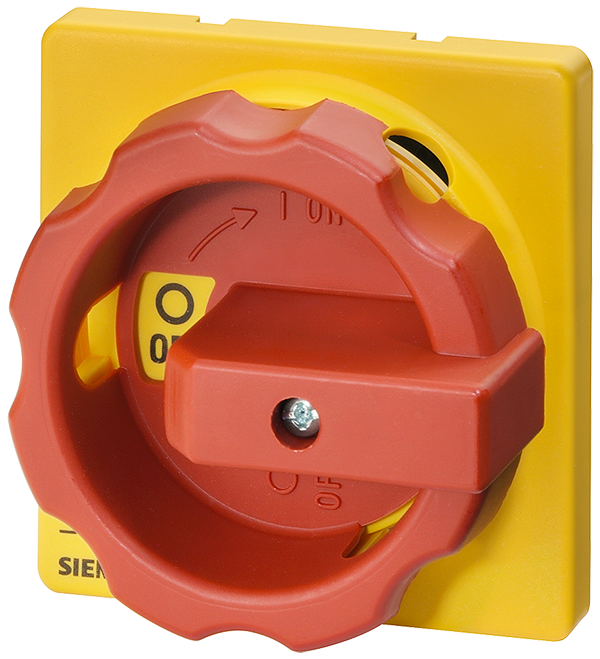 ACCION. GIRATORIO ROJO/AMARILLO PARA INT. 3LD2, 63 BIS 125A PARA FIJACION FRONTAL FIJACION EN CUATRO AGUJEROS