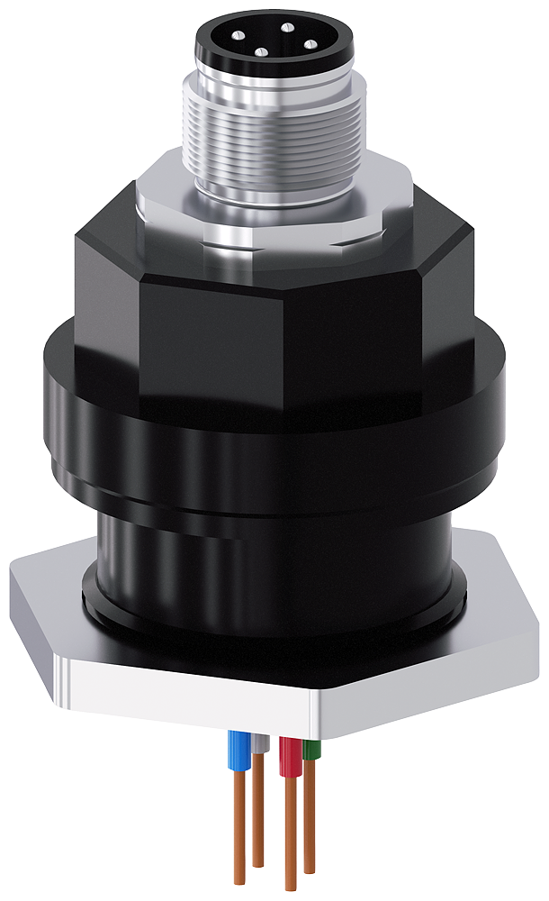 ADAPTADOR MACHO M12 ASI, 4 POLOS, PARA ENTRADA DE CABLES M25, PARA CAJAS DE METAL