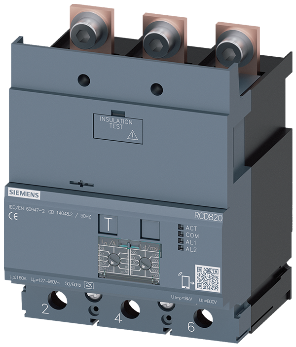UNIDAD PROTEC. DIFERENCIAL RCD820 ADVANCED RCD TIPO A MONTADO ABAJO SENSIBILIDAD ASIGNADA 0,03..30A CON 50/60HZ EINSTELLBARER TV 0…10000MSEK 3- POLIG IN=160A UE=100-690V ACCESORIO PARA: 3VA2
