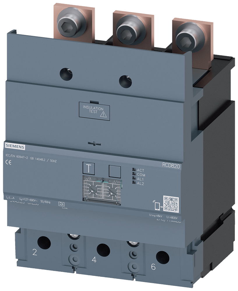 UNIDAD PROTEC. DIFERENCIAL RCD820 ADVANCED RCD TIPO A MONTADO ABAJO SENSIBILIDAD ASIGNADA 0,03..30A CON 50/60HZ EINSTELLBARER TV 0…10000MSEK 3- POLIG IN=400A UE=100-690V ACCESORIO PARA: 3VA2