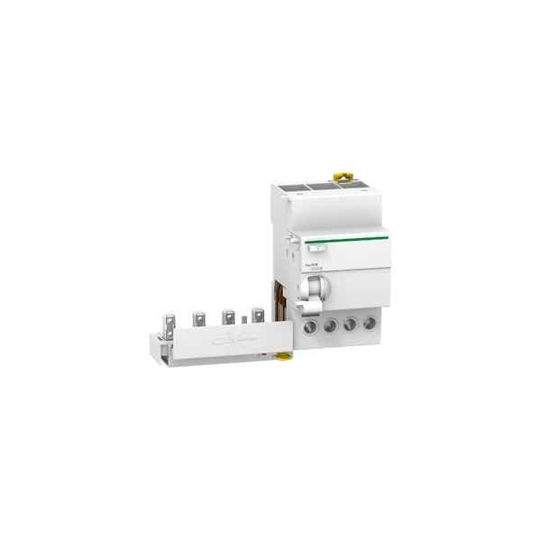 Bloque diferencial Vigi iC60, 4P, 25A, 300mA, clase AC, IP20, 50/60 Hz, sin protección contra sobretensión y con indicador de disparo. Montaje ajustable en clip y soporte en carril DIN. Conexión eléctrica a MCB enchufable. Longitud de cable descubierto de 14mm (inferior). Tensión de funcionamiento nominal: 400 V CA 50/60 Hz de acuerdo con EN 61009-1, 400/415 V CA 50/60 Hz de acuerdo con IEC 61009-1, normas: IEC 61009-1, EN 61009-1. Medidas: 91x54x73,5mm. Con un peso de 0,245kg y de color blanco.