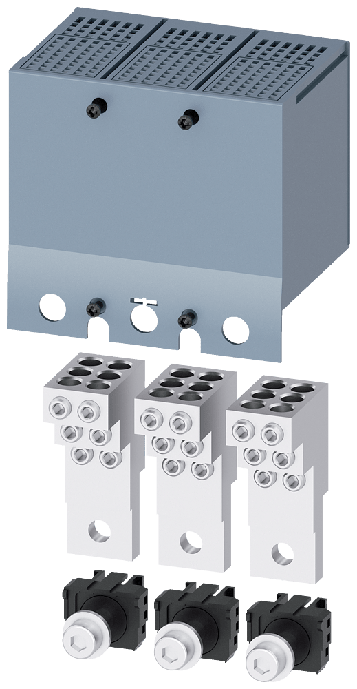 Borne para conductor redondo para 6 cables, 3 uds., incl. tapa cubrebornes prolongada con orificios para ensayo dieléctrico, Accesorio para: 3VA5 250