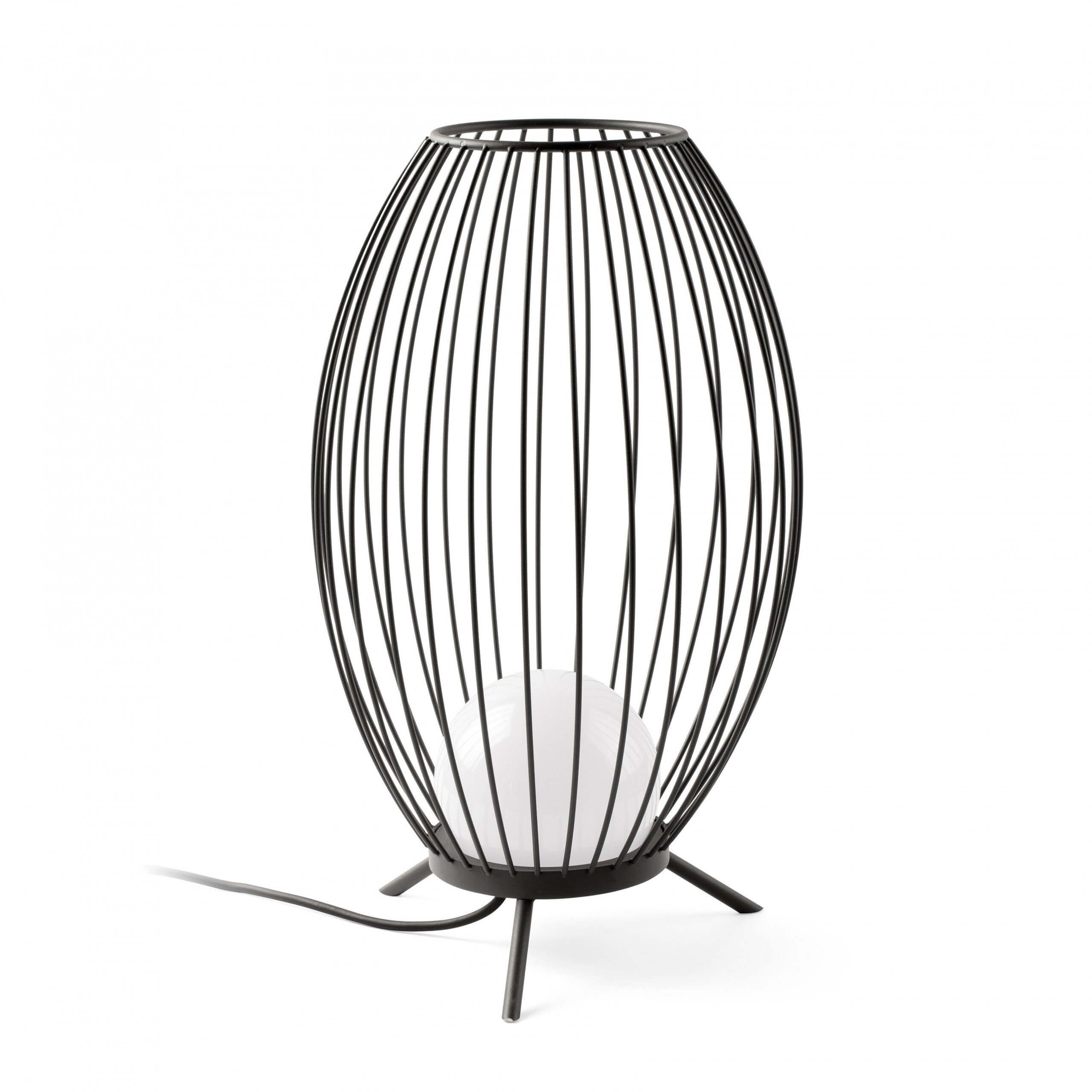 CAGE es una lámpara portátil de pie para la iluminación exterior. Gracias a la larga de su cable, de 2 metros, podrás colocarla en el rincón que quieras. Fabricada en metal, la luz atraviesa su estructura lineal y proporciona una iluminación decorativa además de funcional. Esta luminaria cuenta con IP65 que le otorga una alta protección contra la lluvia y los cuerpos sólidos.