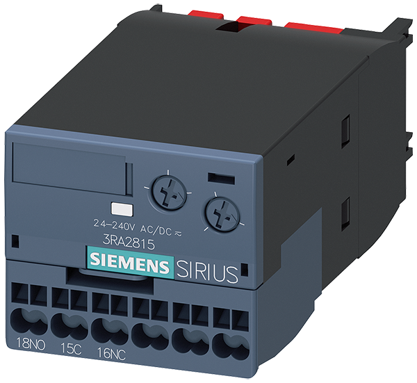 SIRIUS Innovations Contactos auxiliares electronico, retraso desexcitación, Rele 1 contacto conmutado, 24…240 V AC/DC, rango 0, 05…100 S, fijación frontal en contactor 3RT2 conexión resorte