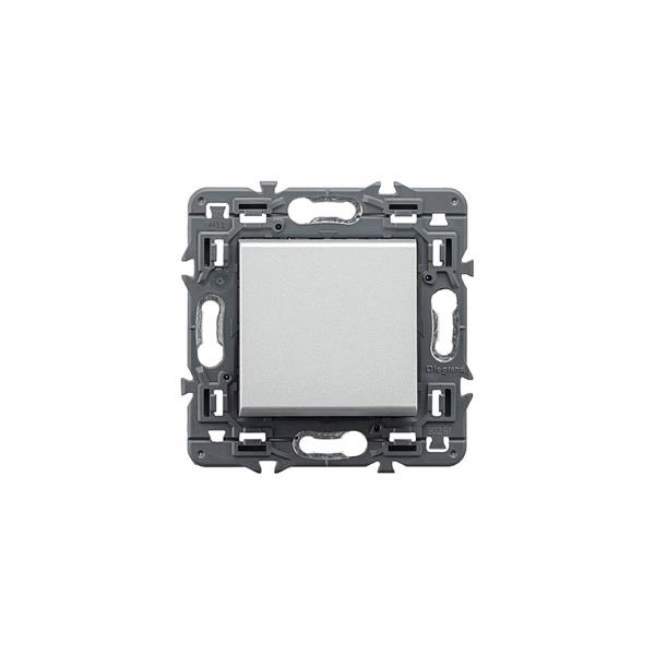 Cruzamiento Valena Next 10 AX – 230 V~. Bornes automáticos. Aluminio. Los mecanismos para iluminación Valena Next se suministran con frontal de acabado para equipar con placas embellecedoras, montaje con tornillos o garras.