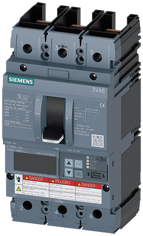 INTERRUPTOR AUTOMATICO 3VA6 UL tamaño 250 CLASE DE PODER DE CORTE C 100KA @ 480 V 3 POLOS, PROTEC. DISTRIBUCIONES ETU860, LSIG, IN=250A PROTECCION DE SOBRECARGA IR=100A …250A PROTECCION DE CORTOCIRCUITO ISD=0,6..10X IN, II=1,5..10X IN PROTECCION DE NEUTRO OPC. CON TC EXT., HASTA 160% PROTECCION DEFECTO A TIERRA IG=0,2… 1 X IN, TG=0,05-0,8S SIN ELEMENT. DE CONEXION