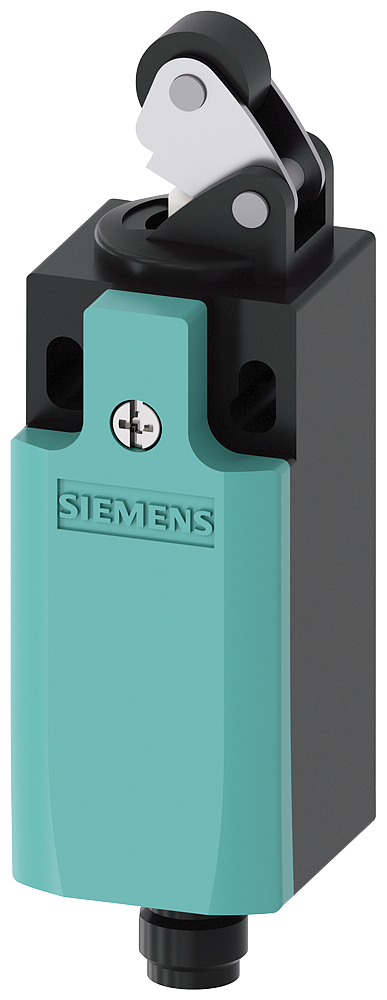 interruptor de posición caja de plástico según DIN EN 50047, 31 mm 1NA/1NC contactos de acción brusca integrado (no intercambiables) con conector M12, 4 polos Asignación de pines: Pin1=21, Pin2=22 pin3=13, pin4=14 para 250 V y 4 A como máximo palanca de rodillo con rodillo de plástico de 13 mm