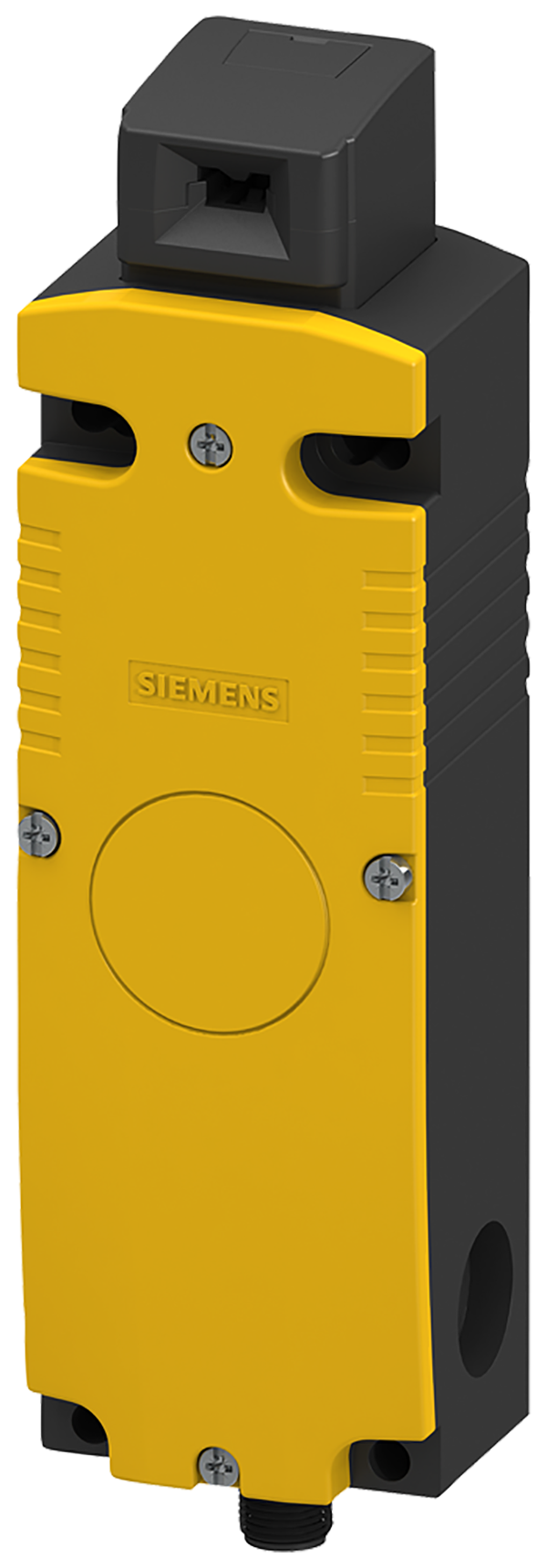 Interruptor de posición de seguridad con retención, fuerza de retención 1300 N, 5 sentidos de ataque, enclavado electromagnéticamente, tensión en electroimán 24 V DC, vigilancia actuador 2 NC/1 NA vigilancia electroimán 2 NC/1 NA, cableado con conector M12, 8 polos, El correspondiente actuador 3SE5000-0AV0. o 3SE5000-0AW4/5. debe pedirse por separado.