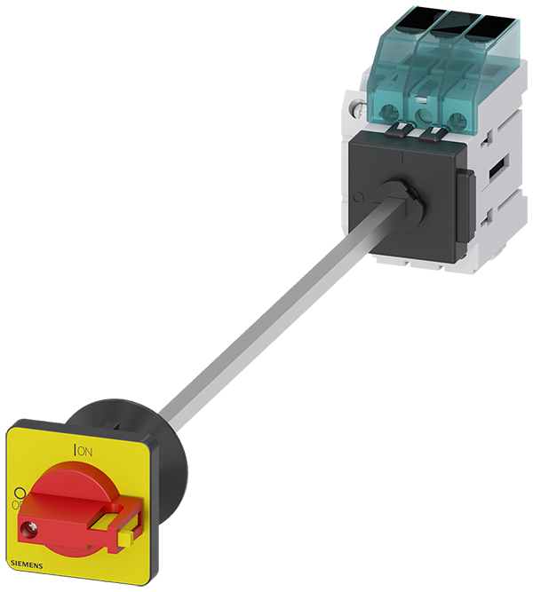 INTERR.PPAL 3LD3 3 POLOS, Iu 16A P/AC CON 400V= 7,5 kW FIJACION EN BASE CON TALADRO ÚNICO CENTRAL 22,5 mm MANETA ROJA/AMARILLA 48 x 48 mm CON CONTACTOS AUXILIARES 1NA+1NC