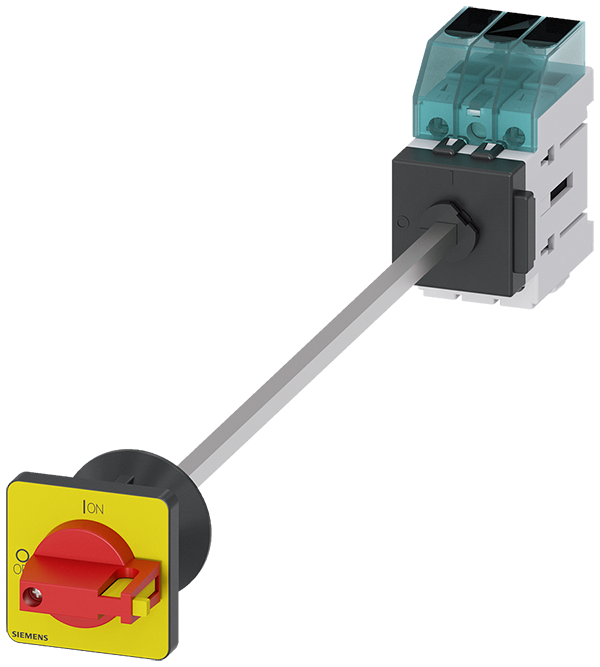 INTERR.PPAL 3LD3 3 POLOS, Iu 40A P/AC CON 400V= 15,0 kW FIJACION EN BASE CON TALADRO ÚNICO CENTRAL 22,5 mm MANETA ROJA/AMARILLA 48 x 48 mm