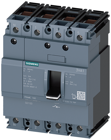 INTERRUPT.-SECCIONADOR 3VA1 IEC TAMA? O 160 4 POLOS SD100, IN=100A SIN PROTEC. DE SOBRECARGA SIN PROTEC. DE CORTOCIRCUITO CONEXION EN BORNES