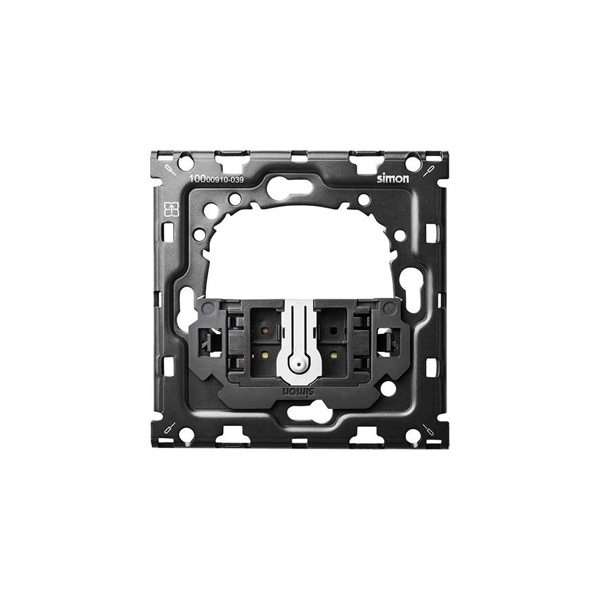 Kit back para 1 elemento con 1 conmutador pulsante Simon 100. Simon 100 nace para simplificar la vida de los usuarios. Un ejemplo de ello son los kits, pensados para integrar en una sola pieza diferentes funciones. La parte interior de un kit, el mecanismo, se denomina “Kit Back”. Este en concreto es el Kit back para 1 elemento con 1 conmutador pulsante.