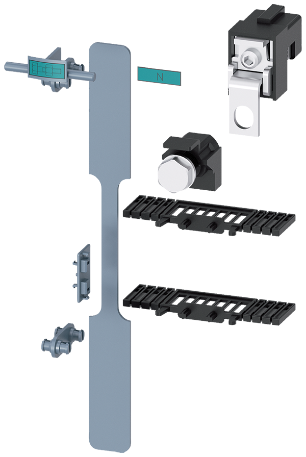 Kit de montaje, para crear 3NP1 de 4 polos para montaje en embarrado 8US de 60 mm, para tamaño NH1 con borne de caja o variante plana de conexión, accesorio para interruptores seccionadores fusibles 3NP1
