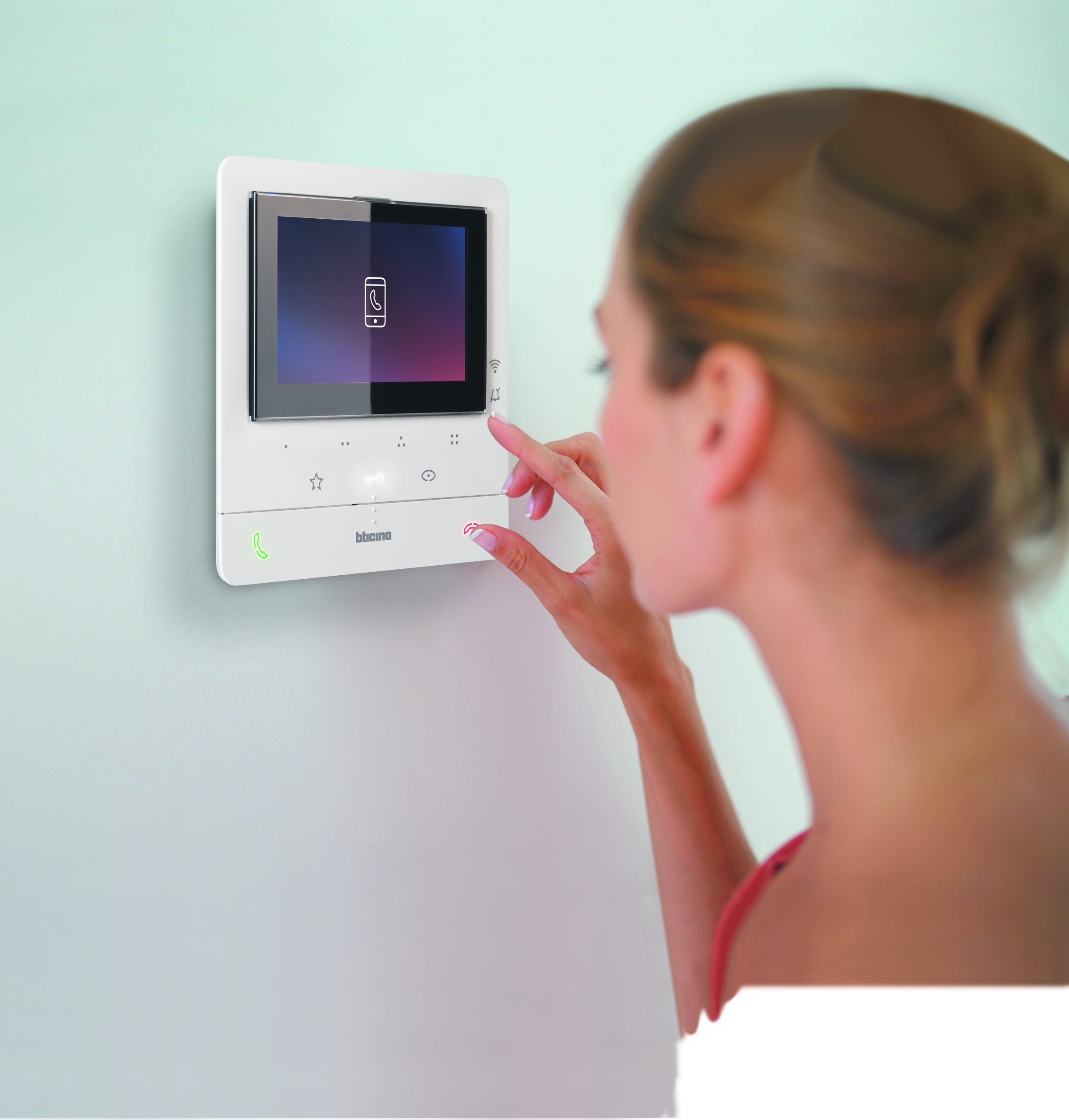 Kit manos libres unifamiliar con monitor conectado CLASSE 100X16E Wi-Fi, manos libres, teleloop, pantalla LCD de 5″, placa exterior de pulsadores modular SFERA NEW con frontal de aluminio y cámara a color. Luz blanca LED para etiquetas rotulables. El monitor dispone de función teleloop (para permitir el uso por parte de los portadores de prótesis auditivas provistas de selector T). Dispone de 2 botones físicos para controlar las principales funciones – respuesta y finalización de la comunicación – está dotado de 3 botones táctiles para controlar las principales funciones – apertura de la cerradura, activación de las luces de la escalera y activación de la placa exterior/visualización cíclica de las cámaras– más 4 botones táctiles configurables – ej. intercom, activación de la cerradura adicional.