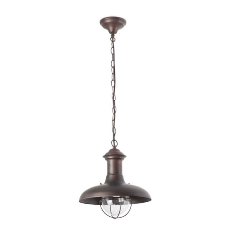 Colgante de exterior de estilo clásico fabricado en metal y difusor de cristal burbuja.