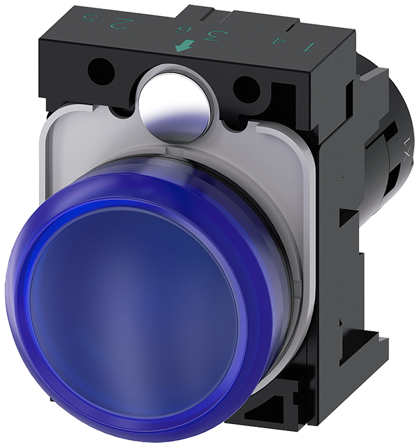 LAMPARA DE SENALIZ., COMPACTA, 22MM, REDONDO, PLASTICO, AZUL, LENTE, LISA, CON SOPORTE, TENSION DE EMPLEO 24V AC/DC, BORNES DE TORNILLO