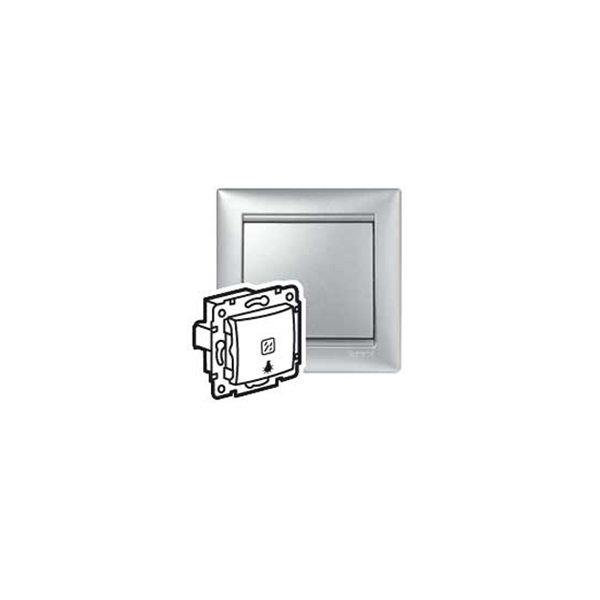 Pulsadores 10 A – 250 V~ – Bornes automáticos Pulsador luminoso con símbolo de lámpara – Se suministra con lámpara verde de 1 mA – 230 V Ref. 7 758 90 – Aluminio brillante