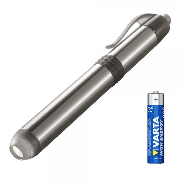 Linterna bolígrafo con Led blanco de 5mm y carcasa de aluminio. Pila incluida.