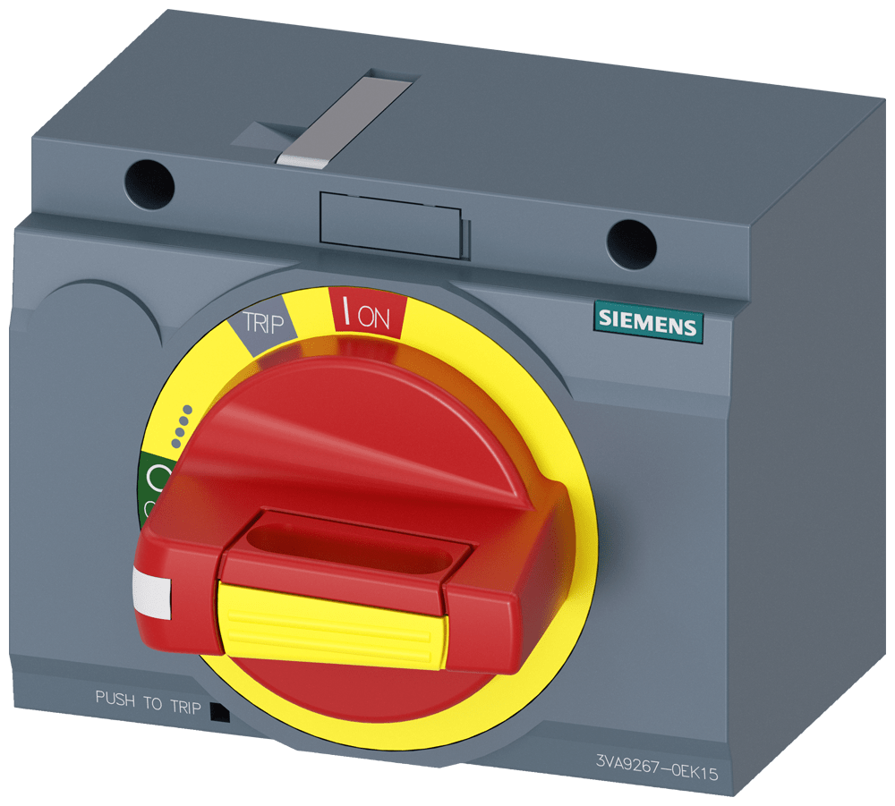 ACCIONAMIENTO GIRAT. FRONTAL PARO EMERG. IEC IP30/40 ACCESORIO PARA: 3VA2 100/160/250