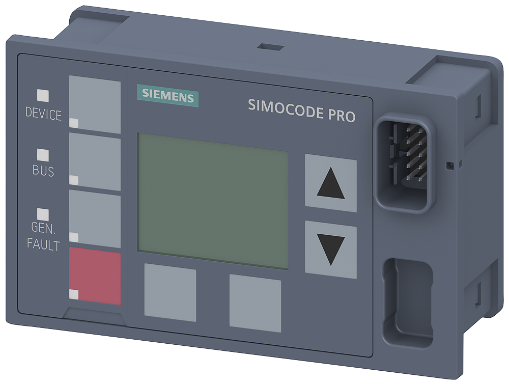 MODULO DE MANDO C/ DISPLAY, PARA SIMOCODE PRO V, MONTAJE EN PUERTA ARM. ELEC. O PLACA FRONTAL ENCHUFABLE APARATO BASICO 2 O MODULO AMPLIACION 7 LED A VISUAL. ESTADO Y 4 PULSADORES ASIGNABLES A MANDO MANUAL