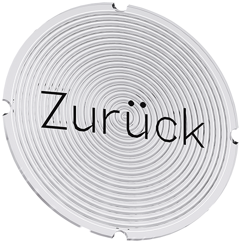 PLAQUITA INTERIOR PARA PULSADORES ILUMINADOS, REDONDA, LACTEO CON LETRA NEGRA, CON INSCRIPCION: ZURUECK