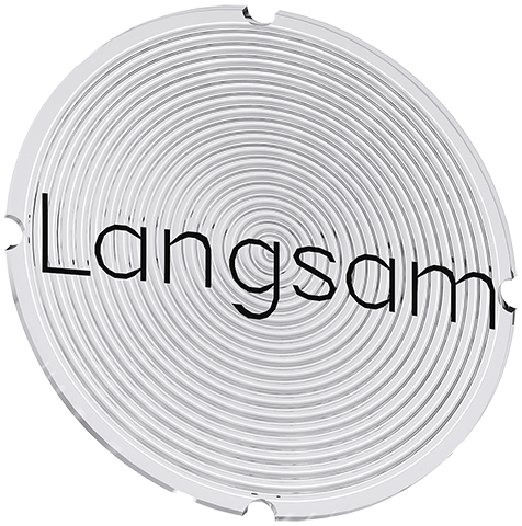 PLAQUITA INTERIOR PARA PULSADORES ILUMINADOS, REDONDA, LACTEO CON LETRA NEGRA, CON INSCRIPCION: LANGSAM