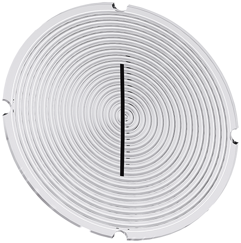PLAQUITA INTERIOR PARA PULSADORES ILUMINADOS, REDONDA, LACTEO CON LETRA NEGRA, CON SIMBOLO GRAFICO: I