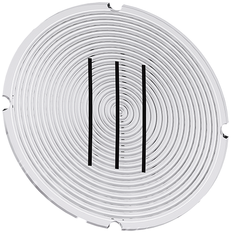 PLAQUITA INTERIOR PARA PULSADORES ILUMINADOS, REDONDA, LACTEO CON LETRA NEGRA, CON SIMBOLO GRAFICO: III