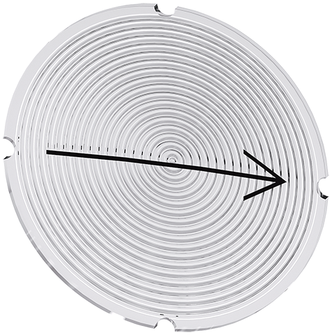 PLAQUITA INTERIOR PARA PULSADORES ILUMINADOS, REDONDA, LACTEO CON LETRA NEGRA, CON SIMBOLO GRAFICO: FLECHA HACIA LA DERECHA