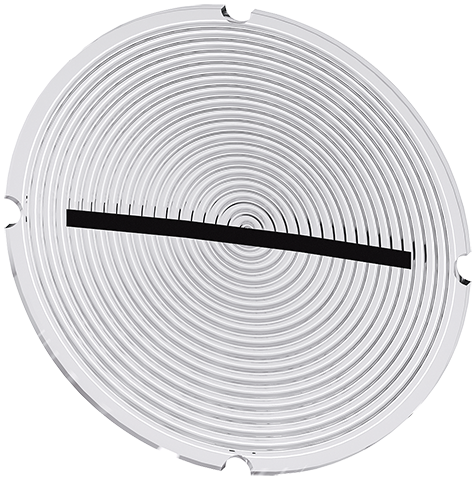 PLAQUITA INTERIOR PARA PULSADORES ILUMINADOS, REDONDA, LACTEO CON LETRA NEGRA, CON SIMBOLO GRAFICO: REDUCIR, MENOS