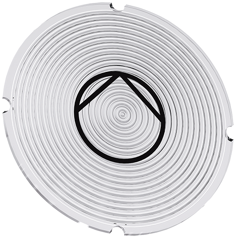 PLAQUITA INTERIOR PARA PULSADORES ILUMINADOS, REDONDA, LACTEO CON LETRA NEGRA, CON SIMBOLO GRAFICO: BOMBA