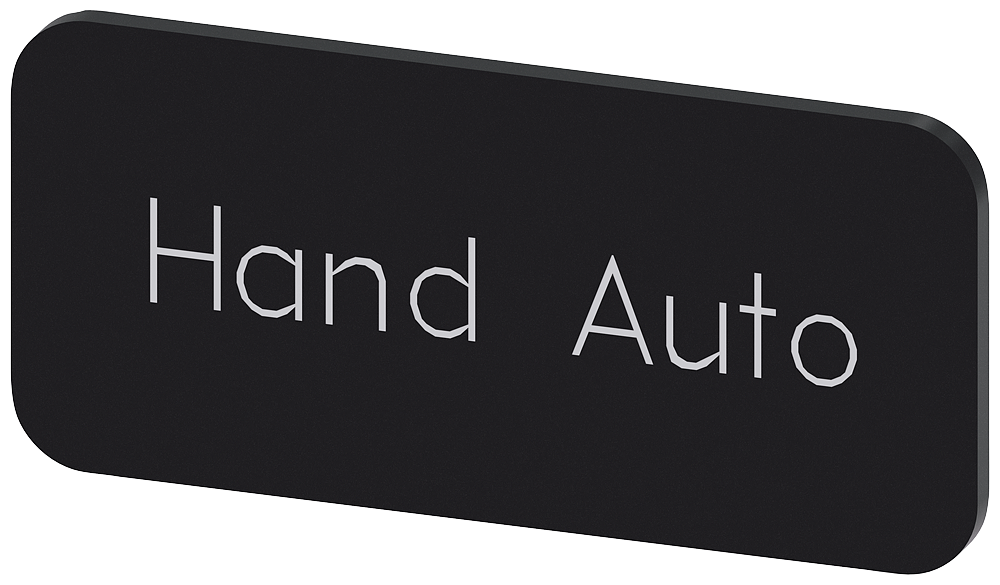 PLAQUITA DE INSCRIPCION PARA ABROCHAR O PEGAR SOBRE PORTAPLAQUITA, TAMANO PLAQUITA 12,5 X 27MM, PLAQUITA NEGRA, LETRA BLANCA, CON INSCRIPCION: HAND AUTO