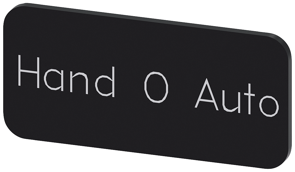 PLAQUITA DE INSCRIPCION PARA ABROCHAR O PEGAR SOBRE PORTAPLAQUITA, TAMANO PLAQUITA 12,5 X 27MM, PLAQUITA NEGRA, LETRA BLANCA, CON INSCRIPCION: HAND O AUTO