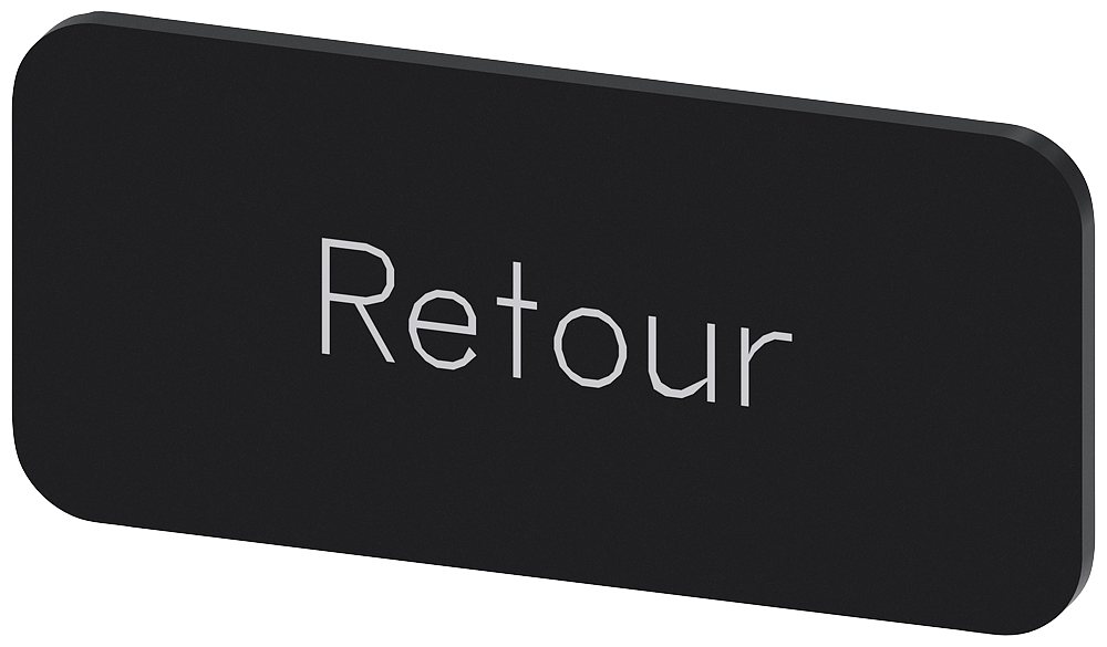 PLAQUITA DE INSCRIPCION PARA ABROCHAR O PEGAR SOBRE PORTAPLAQUITA, TAMANO PLAQUITA 12,5 X 27MM, PLAQUITA NEGRA, LETRA BLANCA, CON INSCRIPCION: RETOUR