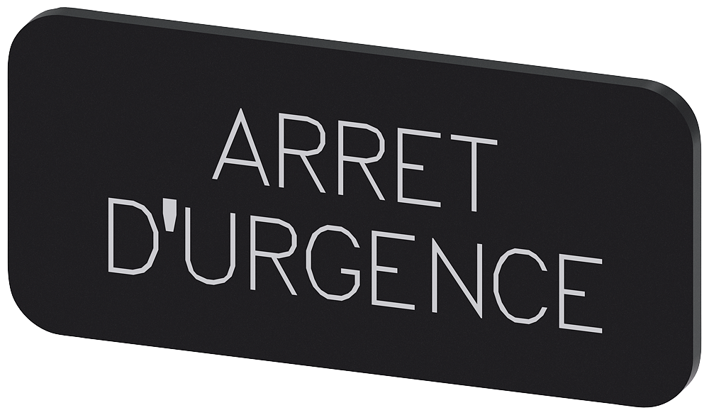 PLAQUITA DE INSCRIPCION PARA ABROCHAR O PEGAR SOBRE PORTAPLAQUITA, TAMANO PLAQUITA 12,5 X 27MM, PLAQUITA NEGRA, LETRA BLANCA, CON INSCRIPCION: ARRET D’URGENCE