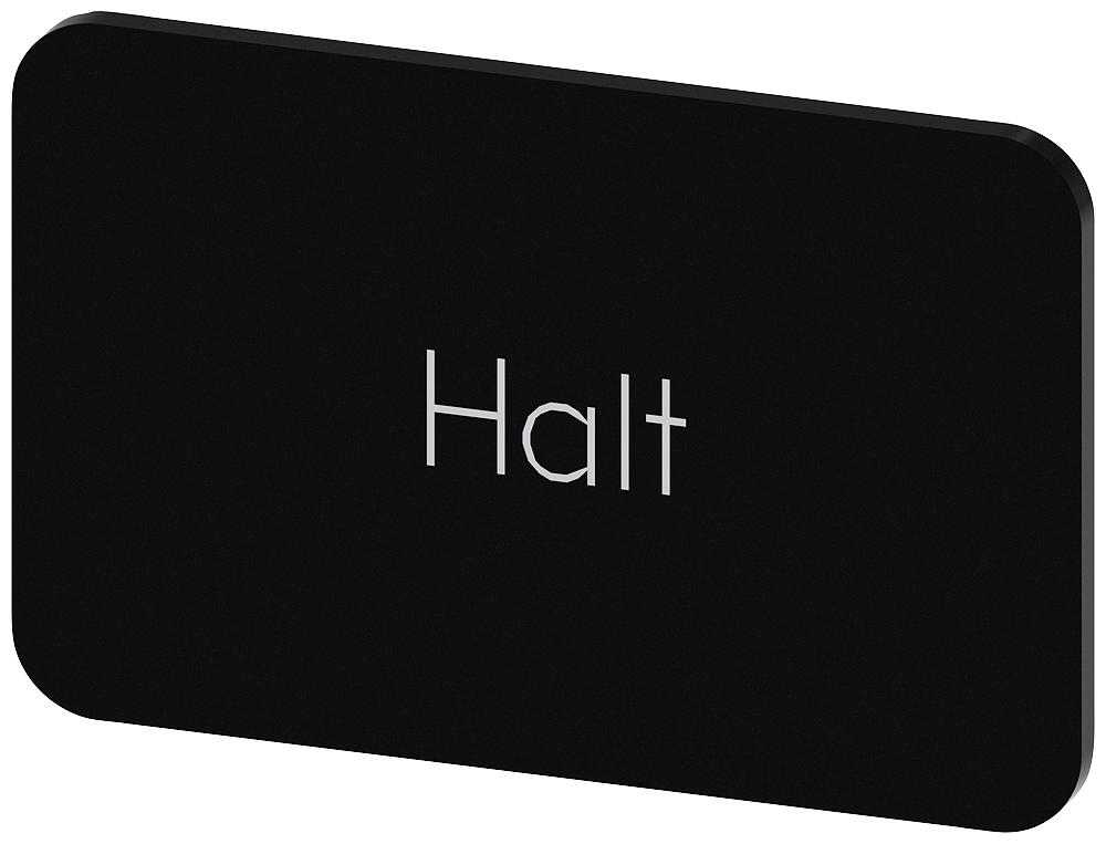 PLAQUITA DE INSCRIPCION PARA ABROCHAR O PEGAR SOBRE PORTAPLAQUITA, TAMANO PLAQUITA 17,5 X 27MM, PLAQUITA NEGRA, LETRA BLANCA, CON INSCRIPCION: HALT