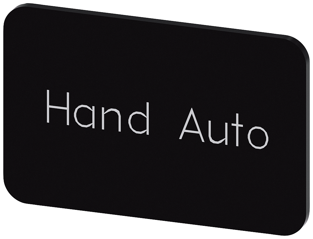 PLAQUITA DE INSCRIPCION PARA ABROCHAR O PEGAR SOBRE PORTAPLAQUITA, TAMANO PLAQUITA 17,5 X 27MM, PLAQUITA NEGRA, LETRA BLANCA, CON INSCRIPCION: HAND AUTO