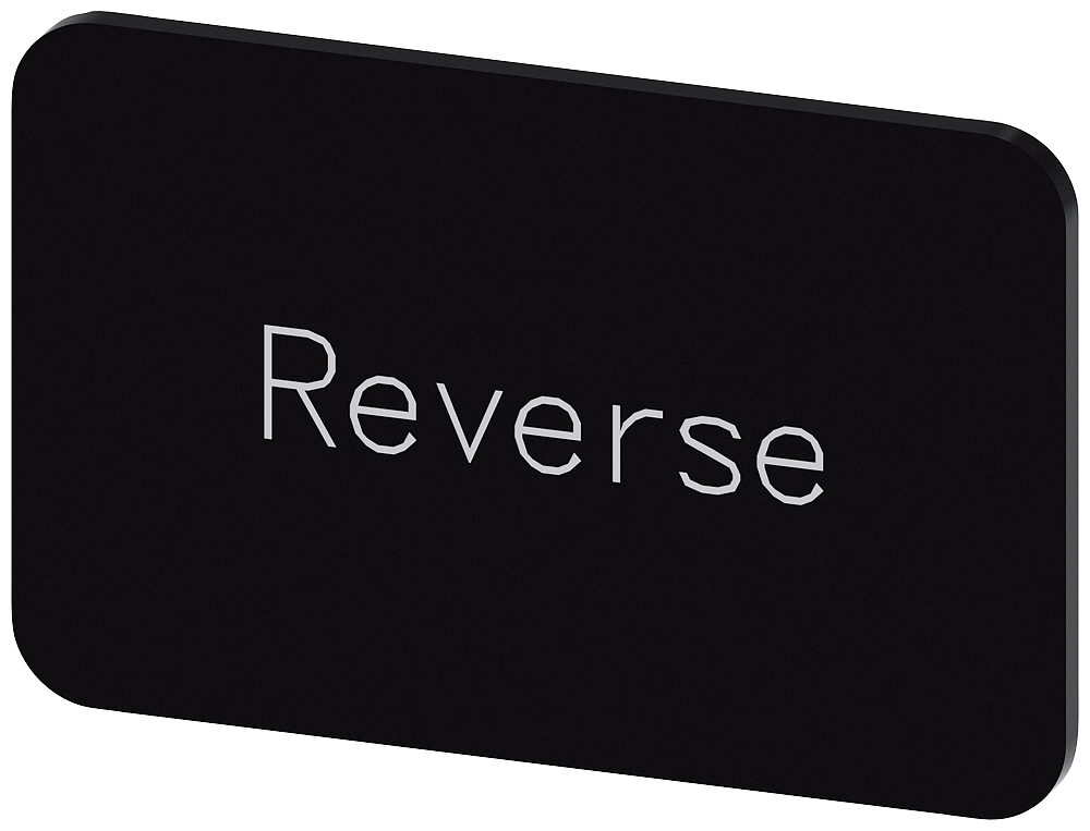 PLAQUITA DE INSCRIPCION PARA ABROCHAR O PEGAR SOBRE PORTAPLAQUITA, TAMANO PLAQUITA 17,5 X 27MM, PLAQUITA NEGRA, LETRA BLANCA, CON INSCRIPCION: REVERSE