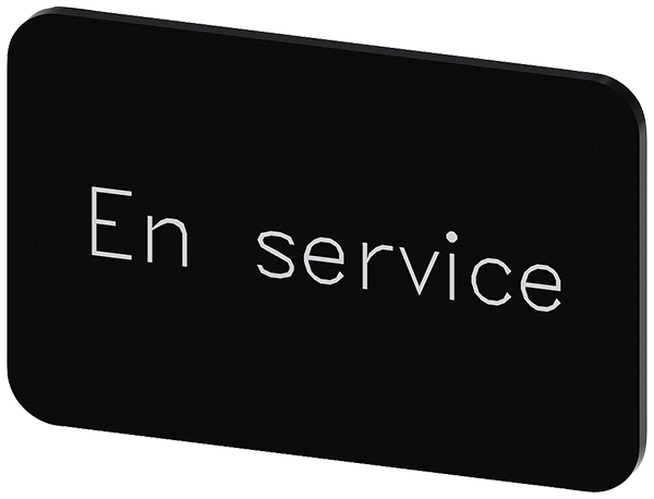 PLAQUITA DE INSCRIPCION PARA ABROCHAR O PEGAR SOBRE PORTAPLAQUITA, TAMANO PLAQUITA 17,5 X 27MM, PLAQUITA NEGRA, LETRA BLANCA, CON INSCRIPCION: EN SERVICE