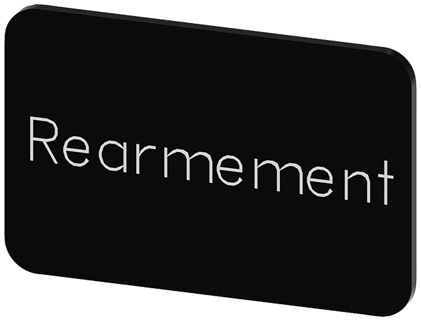 PLAQUITA DE INSCRIPCION PARA ABROCHAR O PEGAR SOBRE PORTAPLAQUITA, TAMANO PLAQUITA 17,5 X 27MM, PLAQUITA NEGRA, LETRA BLANCA, CON INSCRIPCION: REARMEMENT