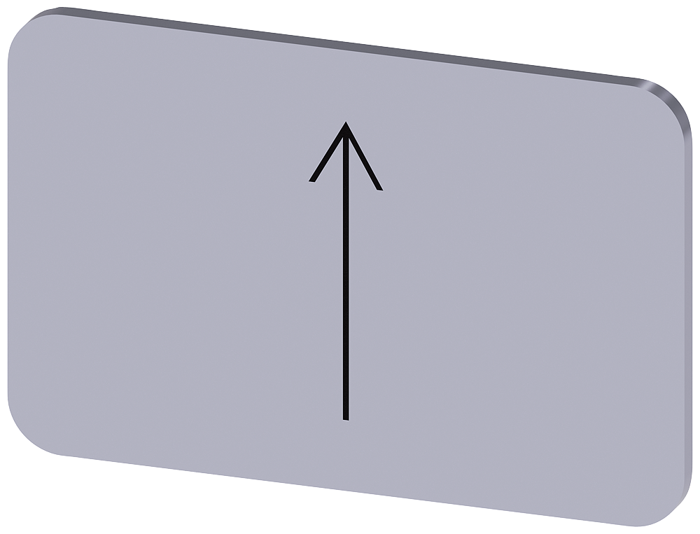 PLAQUITA DE INSCRIPCION PARA ABROCHAR O PEGAR SOBRE PORTAPLAQUITA, TAMANO PLAQUITA 17,5 X 27MM, PLAQUITA PLATEADA, LETRA NEGRA, CON SIMBOLO GRAFICO: FLECHA HACIA ARRIBA