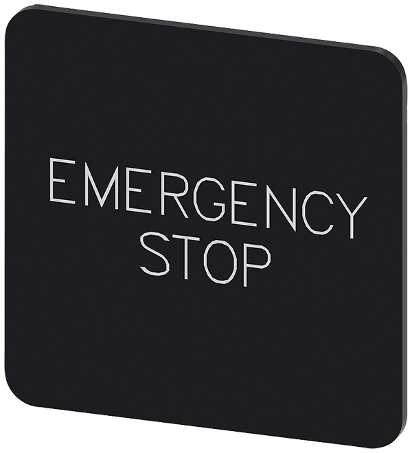 PLAQUITA DE INSCRIPCION PARA ABROCHAR O PEGAR SOBRE PORTAPLAQUITA, TAMANO PLAQUITA 27 X 27MM, PLAQUITA NEGRA, LETRA BLANCA, CON INSCRIPCION: EMERGENCY STOP