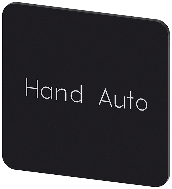 PLAQUITA DE INSCRIPCION PARA ABROCHAR O PEGAR SOBRE PORTAPLAQUITA, TAMANO PLAQUITA 27 X 27MM, PLAQUITA NEGRA, LETRA BLANCA, CON INSCRIPCION: HAND AUTO