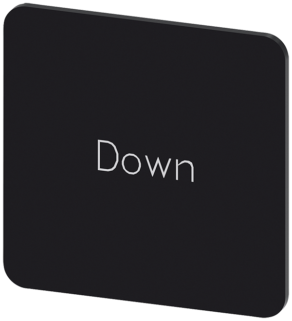 PLAQUITA DE INSCRIPCION PARA ABROCHAR O PEGAR SOBRE PORTAPLAQUITA, TAMANO PLAQUITA 27 X 27MM, PLAQUITA NEGRA, LETRA BLANCA, CON INSCRIPCION: DOWN