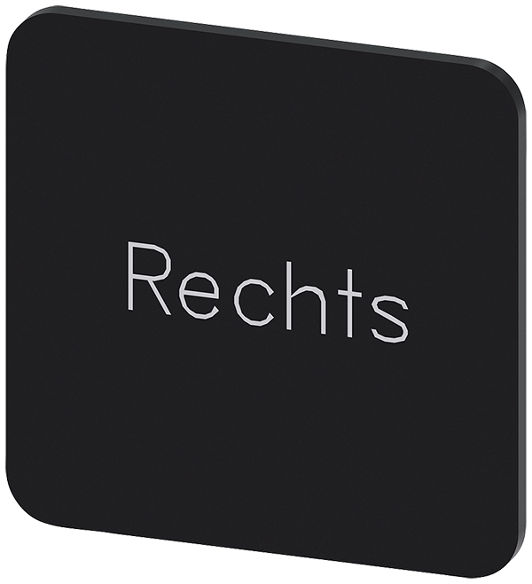PLAQUITA DE INSCRIPCION PARA PEGAR EN LA CAJA, TAMANO PLAQUITA 22 X 22MM, PLAQUITA NEGRA, LETRA BLANCA, CON INSCRIPCION: RECHTS