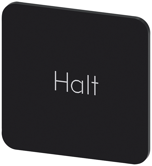 PLAQUITA DE INSCRIPCION PARA PEGAR EN LA CAJA, TAMANO PLAQUITA 22 X 22MM, PLAQUITA NEGRA, LETRA BLANCA, CON INSCRIPCION: HALT