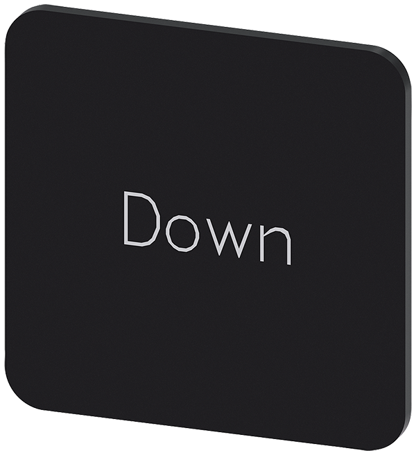 PLAQUITA DE INSCRIPCION PARA PEGAR EN LA CAJA, TAMANO PLAQUITA 22 X 22MM, PLAQUITA NEGRA, LETRA BLANCA, CON INSCRIPCION: DOWN