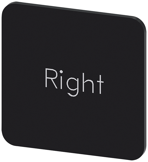 PLAQUITA DE INSCRIPCION PARA PEGAR EN LA CAJA, TAMANO PLAQUITA 22 X 22MM, PLAQUITA NEGRA, LETRA BLANCA, CON INSCRIPCION: RIGHT
