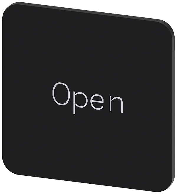 PLAQUITA DE INSCRIPCION PARA PEGAR EN LA CAJA, TAMANO PLAQUITA 22 X 22MM, PLAQUITA NEGRA, LETRA BLANCA, CON INSCRIPCION: OPEN